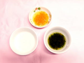 | ・つぶし粥 ・味噌汁(豆腐・人参・ほうれん草) ・白菜の煮物(白菜・人参) |